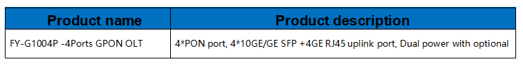 4 PORTS GPON OLT ----FY-G1004P Low Power Consumption PON Terminal | Easy Installation for Fiber to the FTTH/FTTB/ FTTH/HTTX applications